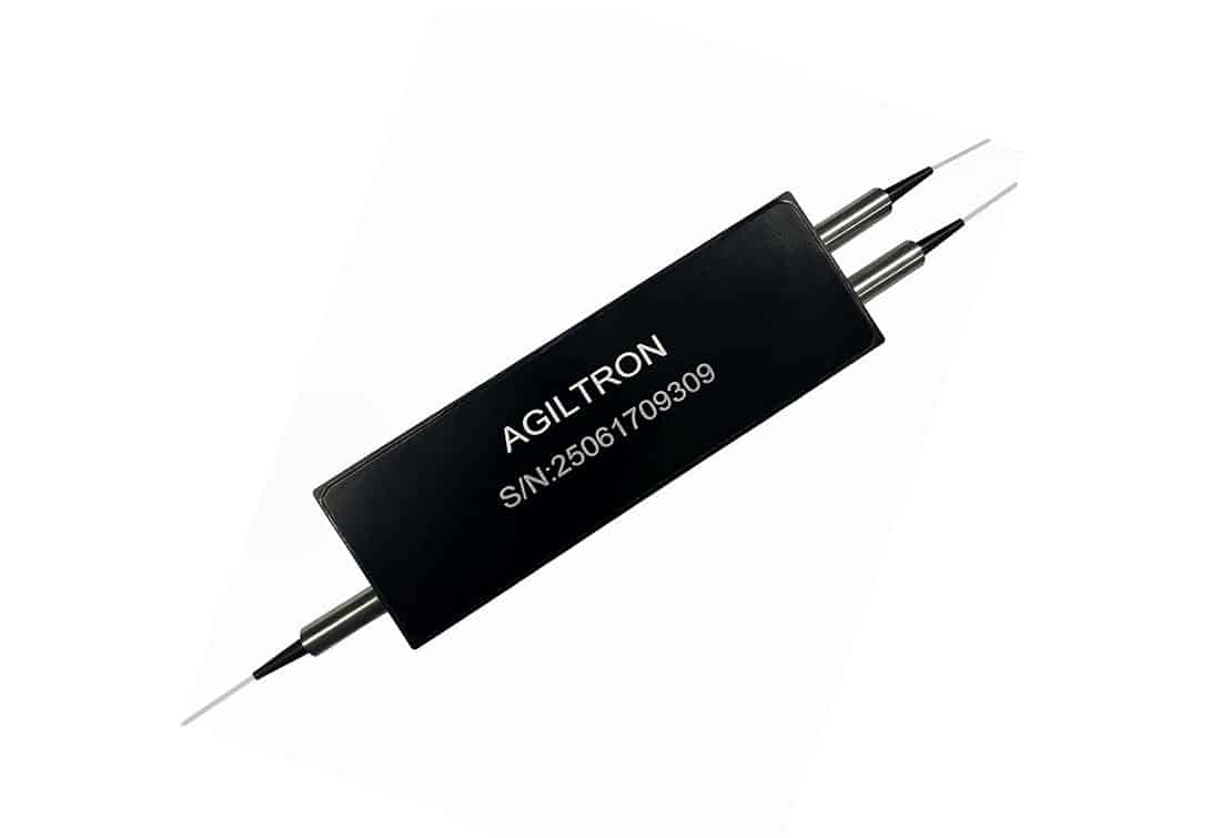 The Nano-Speed Premium Variable Fiber Optical Attenuator (NPOA) provides fast electrical control of optical power. It utilizes special electro-optic crystals that feature lower driving voltage, faster response, and broader wavelength coverage compared to the standard NSOA. This is achieved through a patented configuration activated by a voltage electrical control signal. The solid-state optical crystal design eliminates mechanical movement and organic materials, ensuring high reliability and fast response with minimal mechanical footprint. The NPOA Series Variable Optical Attenuators are designed to meet the most demanding operational requirements, offering ultra-high reliability and fast response times, as well as vibration insensitivity. Agiltron also provides customized electronic designs to meet special control requirements and applications. The NPOA is bidirectional, available in either normally-transparent mode (light passes through without applied voltage) or normally-opaque mode (light is blocked without applied voltage). The attenuation level depends on the stage, and the response speed is related to the attenuation level and driver power (repetition rate), with small attenuations reaching MHz response rates. The NP Series VOA is mounted on a specially designed electronic driving PCB board with a 0~5V control input optimized for various repetition rates.
